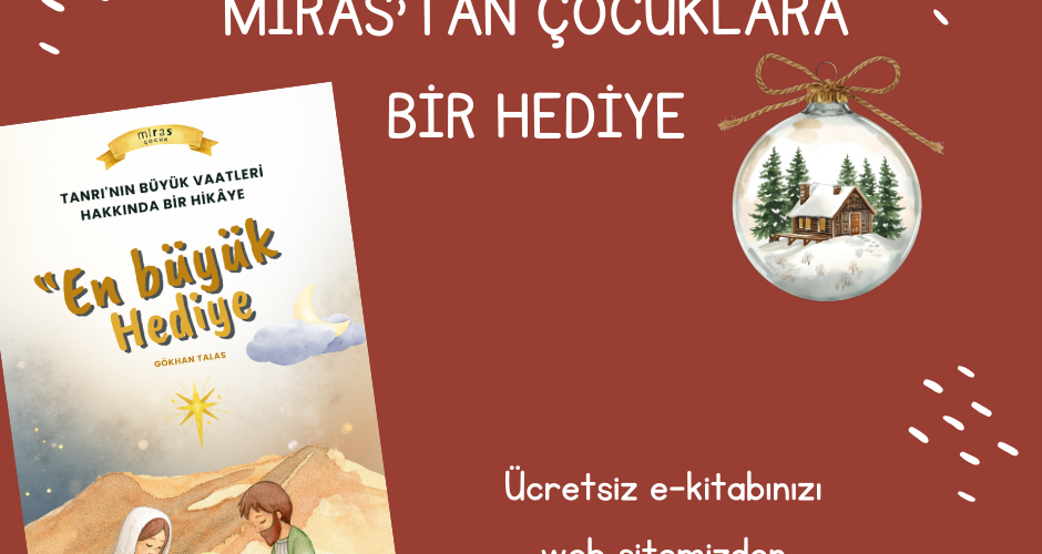Gökhan Talas’ın yazdığı, çocuklara İsa Mesih’in doğumunun mucizesine çağrı yapan “En Büyük Hediye” kitabını aşağıdaki görsele tıklayarak ücretsiz indirebilirsiniz. Tablette, telefonda ve bilgisayarınızda okunabilen çocuklar için Noel’e hazırlığı anlamlı kılacak bu hediyeyi kaçırmayın.